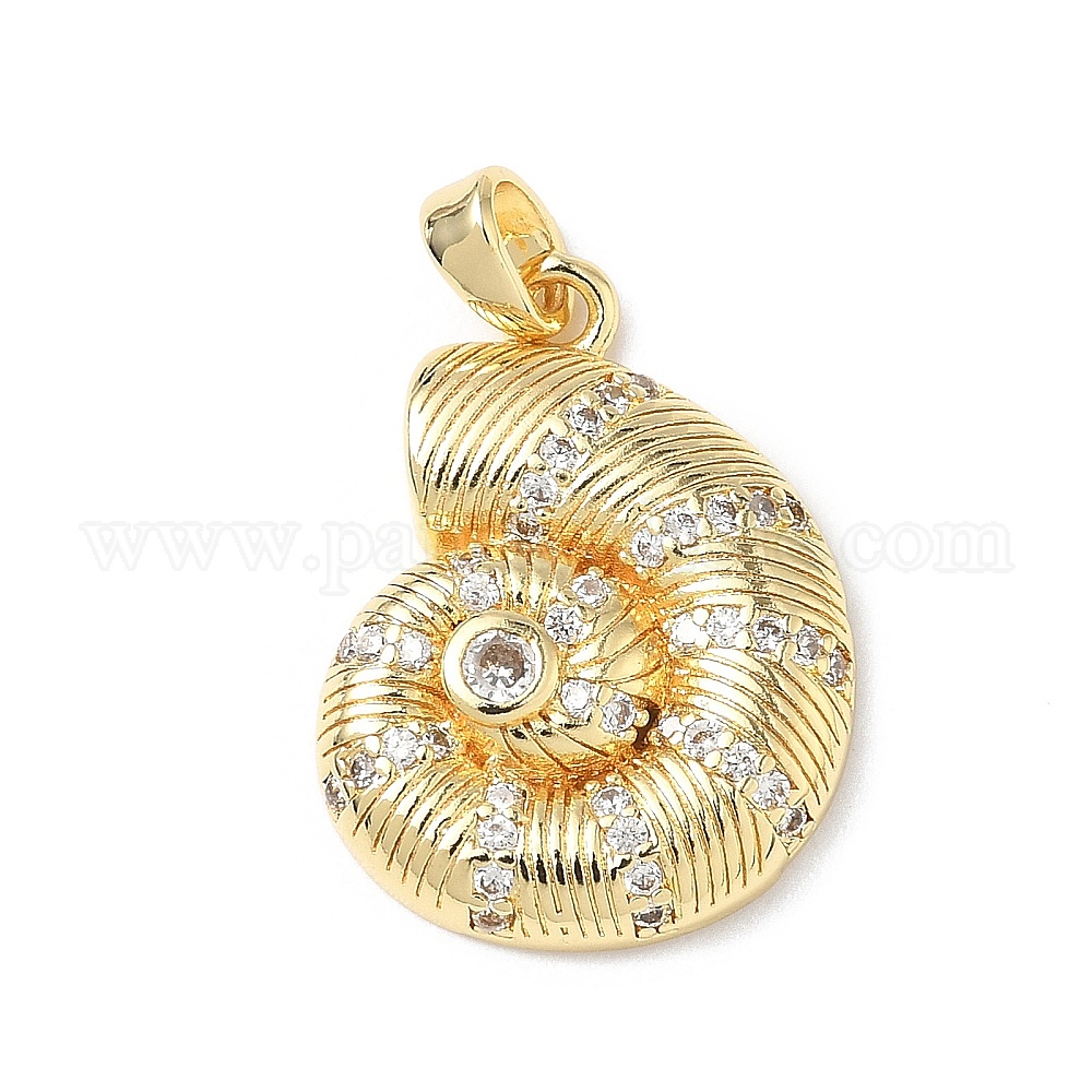 Латунные микропаве прозрачные подвески с фианитом, подвески в форме спиральных ракушек, без свинца и без кадмия, долговечный, стойки покрытие