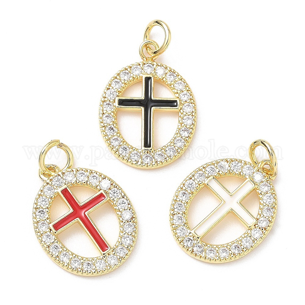 Подвески из латуни с микропаве из прозрачных кубических цирконий и эмали, овальные с поперечными прелести, с целью перехода в кольце, без свинца и без кадмия, долговечный, стойки покрытие, реальный 18 k позолоченный