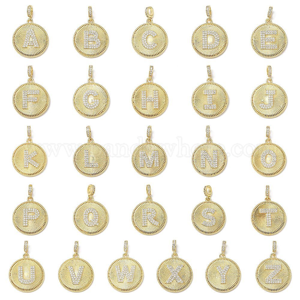 Латунные микропаве прозрачные подвески с фианитом, плоский круглый с подвесками в виде букв, без свинца и без кадмия, долговечный, стойки покрытие, реальный 18 k позолоченный