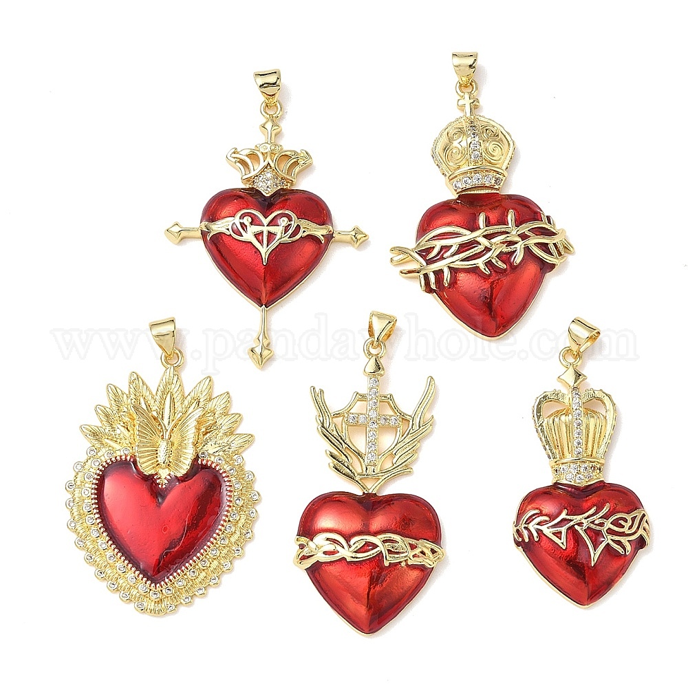 Подвески из латуни с кубическим цирконием и эмалью, сердце прелести, без свинца и без кадмия, долговечный, стойки покрытие
