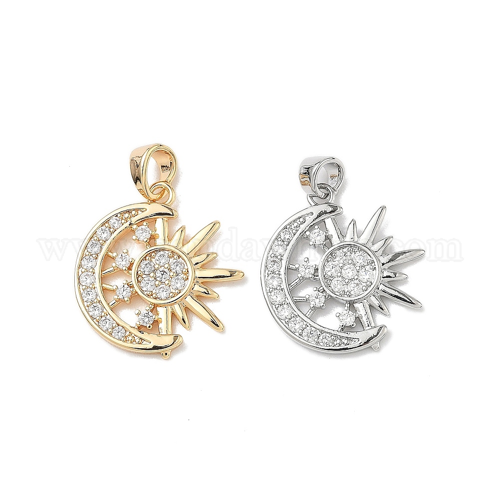 Латунные микропаве прозрачные подвески с фианитом, амулеты луны и солнца