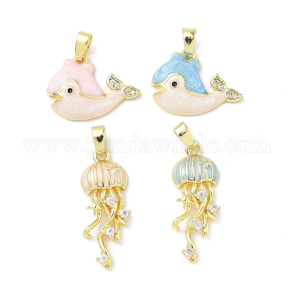 Латунь микропаве фианиты с подвесками из эмали, реальный 18 k позолоченный