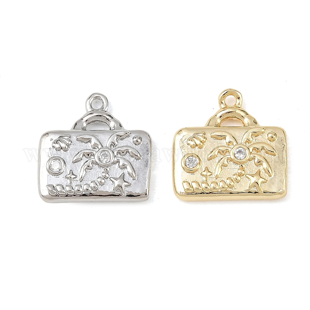 Латунные микропаве прозрачные подвески с фианитом, сумка с рисунком кокосовой пальмы, без кадмия, без никеля и без свинца (038D4E)