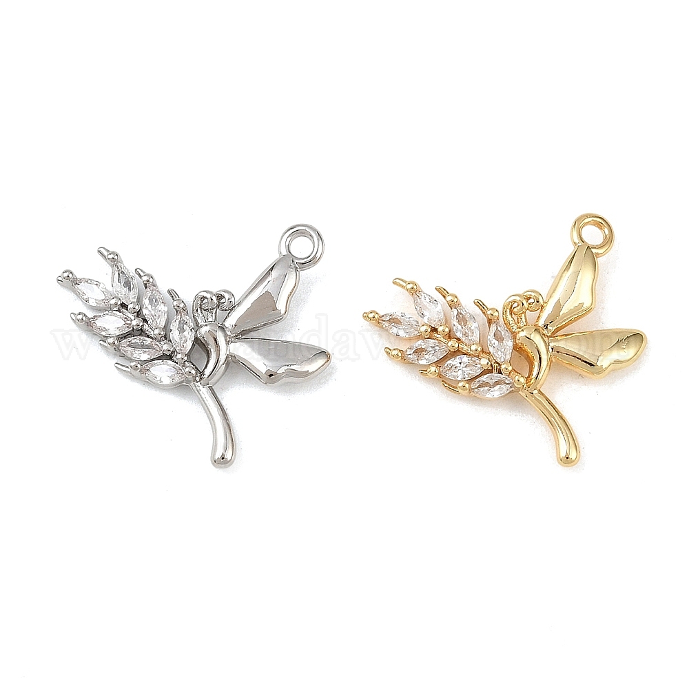 Латунные микропаве прозрачные подвески с фианитом, пшеница с бабочкой, без кадмия, без никеля и без свинца