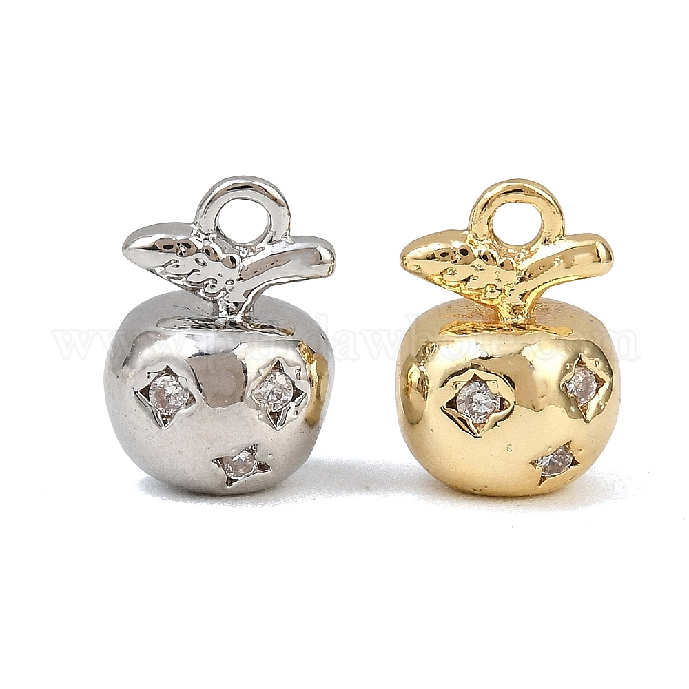Латунные микропаве прозрачные кубические циркониевые подвески, яблоко, без кадмия, без никеля и без свинца