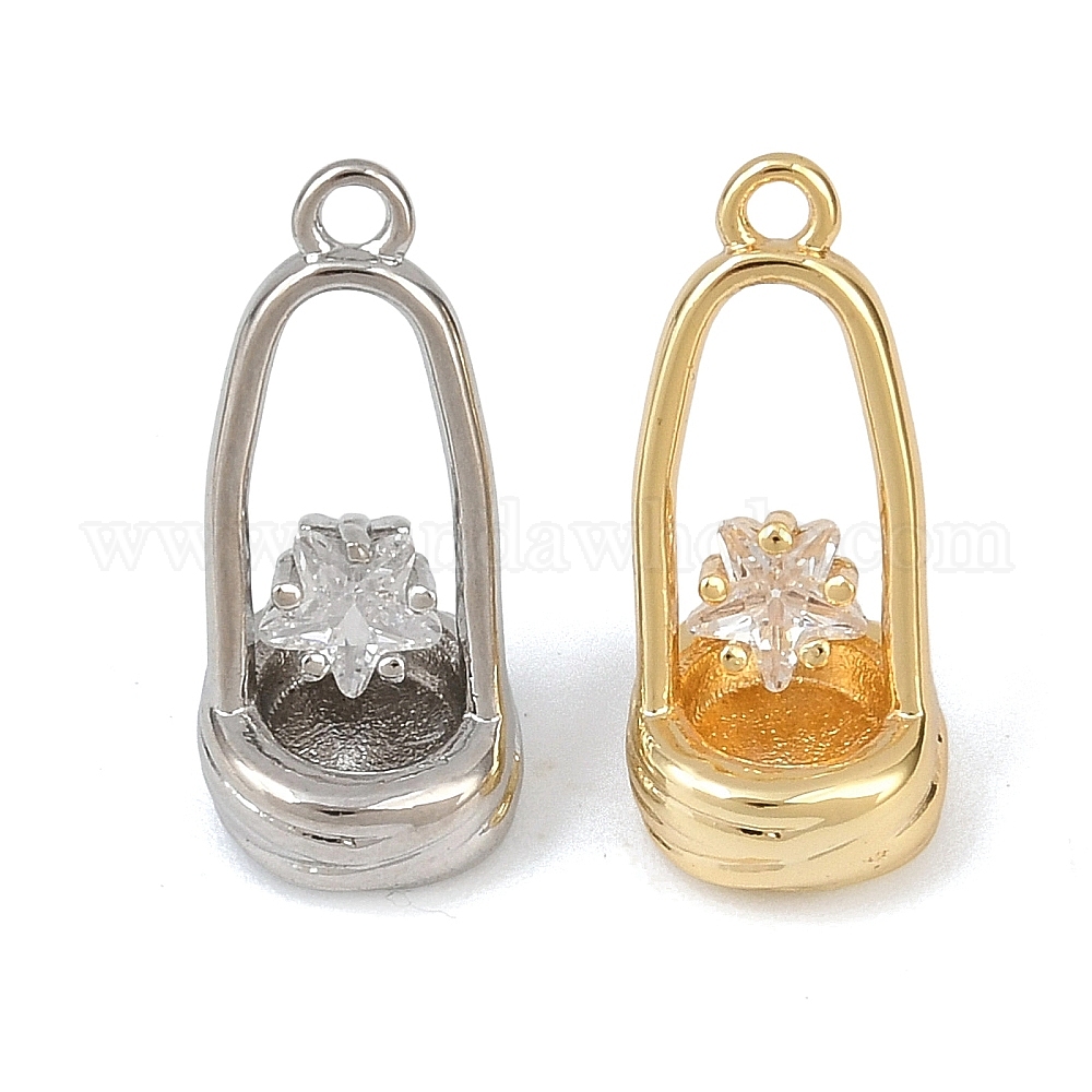 Латунные микропаве прозрачные подвески с фианитом, корзина со звездой, без кадмия, без никеля и без свинца