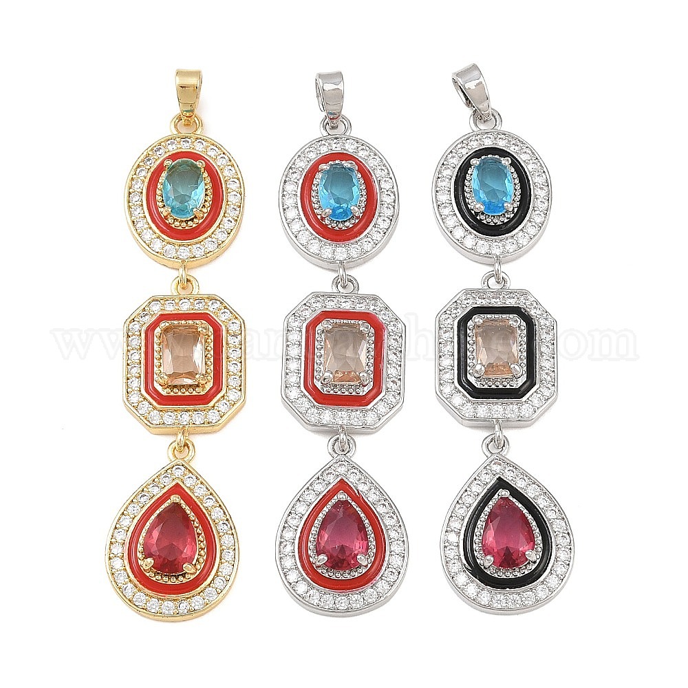 Латунные микро проложить кубического циркония большие кулоны, с эмалью, овал, шестиугольник и капля
