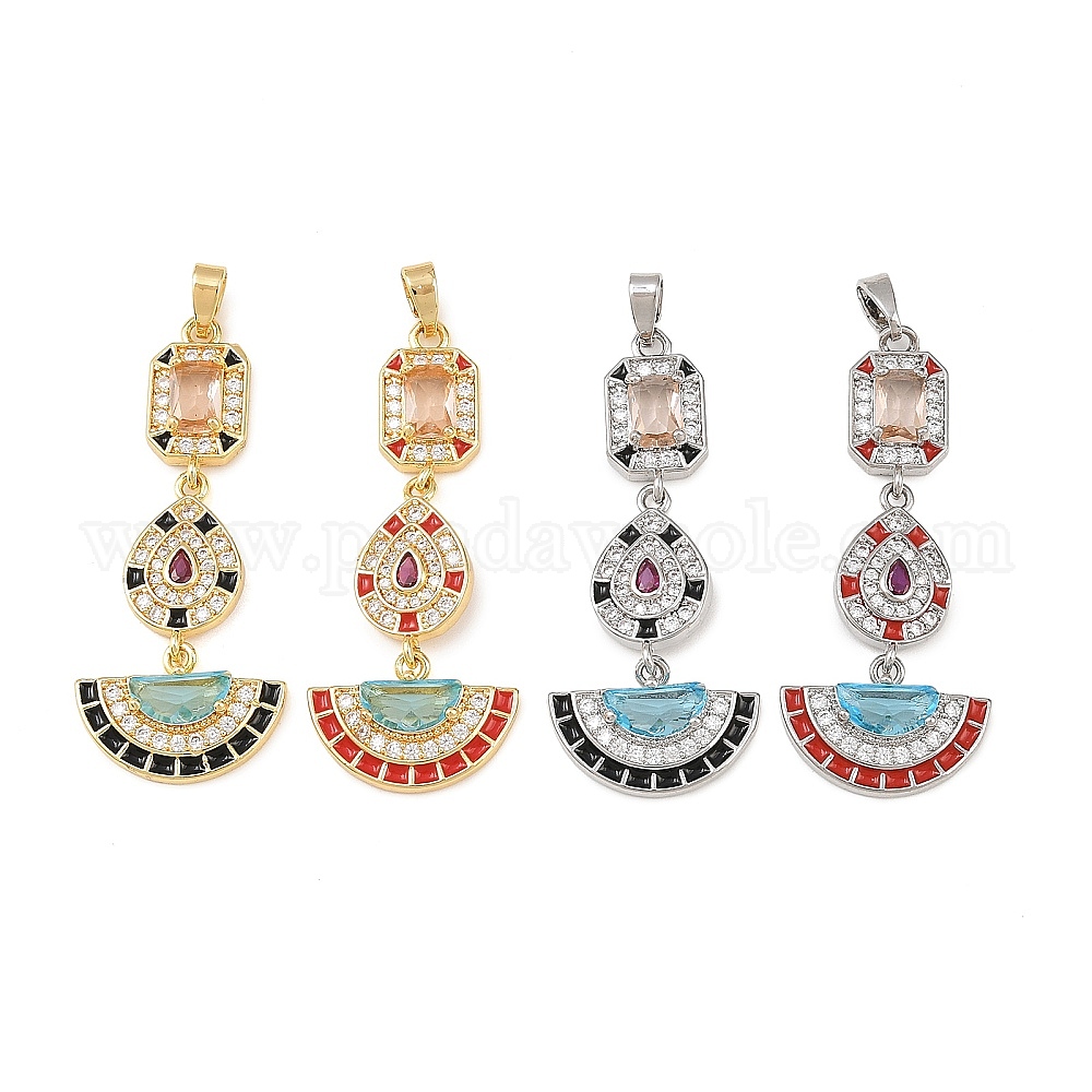 Латунные микро проложить кубического циркония подвески, с эмалью, веер, шестиугольник и капля