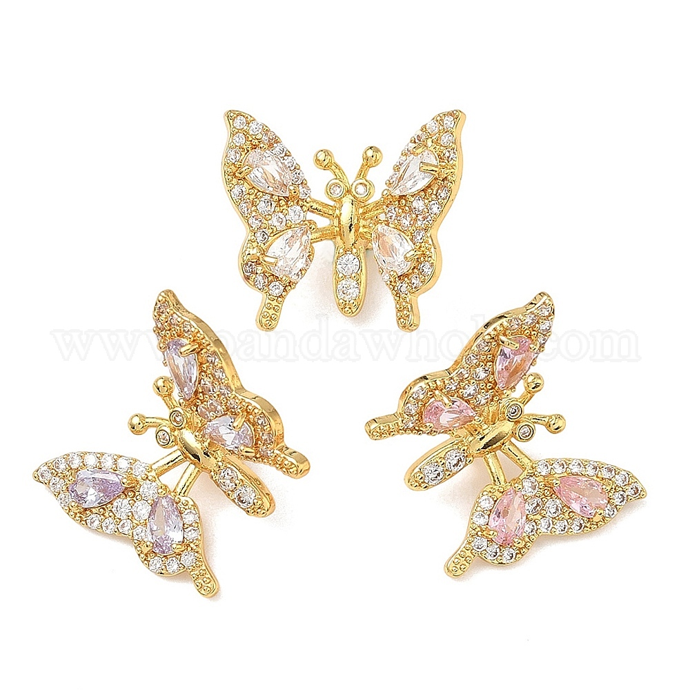 • Pink Латунные микро проложить кубического циркония подвески, очарование бабочки, реальный 18 k позолоченный, розовые, 17.5x20.5x9 мм, отверстие : 1.8 мм