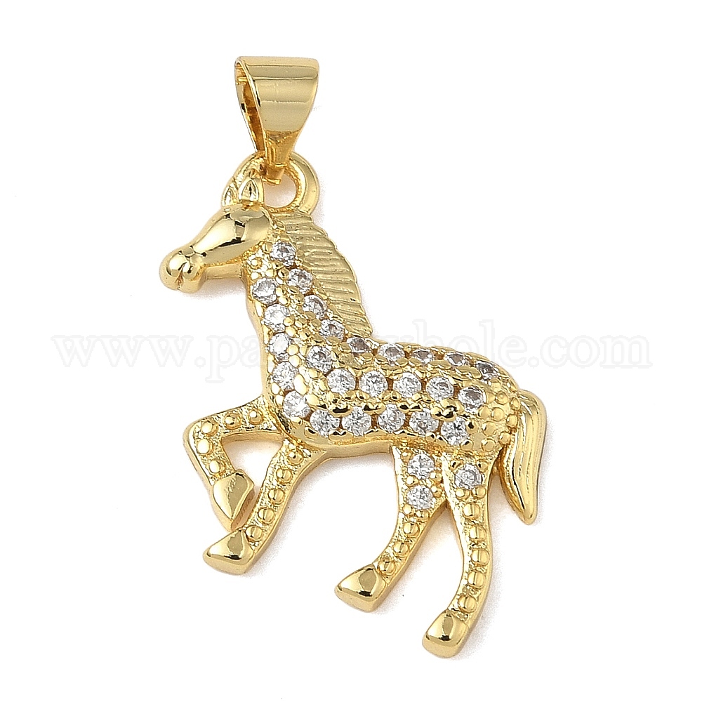 Латунные микропаве прозрачные подвески с фианитом, лошади прелести