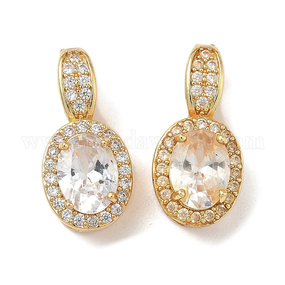 Латунные микропаве прозрачные подвески с фианитом, овальный шарм