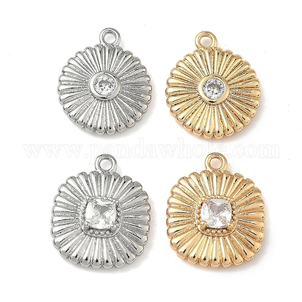 Подвески из латуни с микропаве из кубических цирконий с рифленой отделкой, долговечный, плоский круглый/квадратный брелок