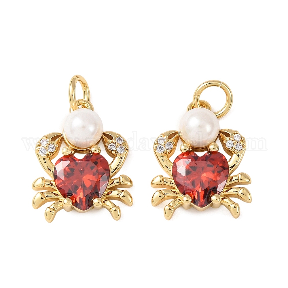 Латунные микро проложить кубического циркония подвески, с абс пластмассовой имитационной жемчужиной, крабовые прелести, без кадмия и без свинца, стойки покрытие, долговечный, с целью перехода в кольце