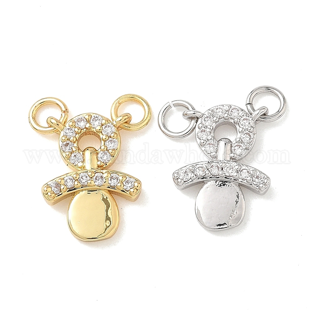 • Платина Латунные микропаве прозрачные кубические циркониевые подвески, с целью перехода в кольце, долговечный, без кадмия и без свинца, подвеска в форме соски, платина, 13x9.5x2 мм, отверстие : 2.5 мм