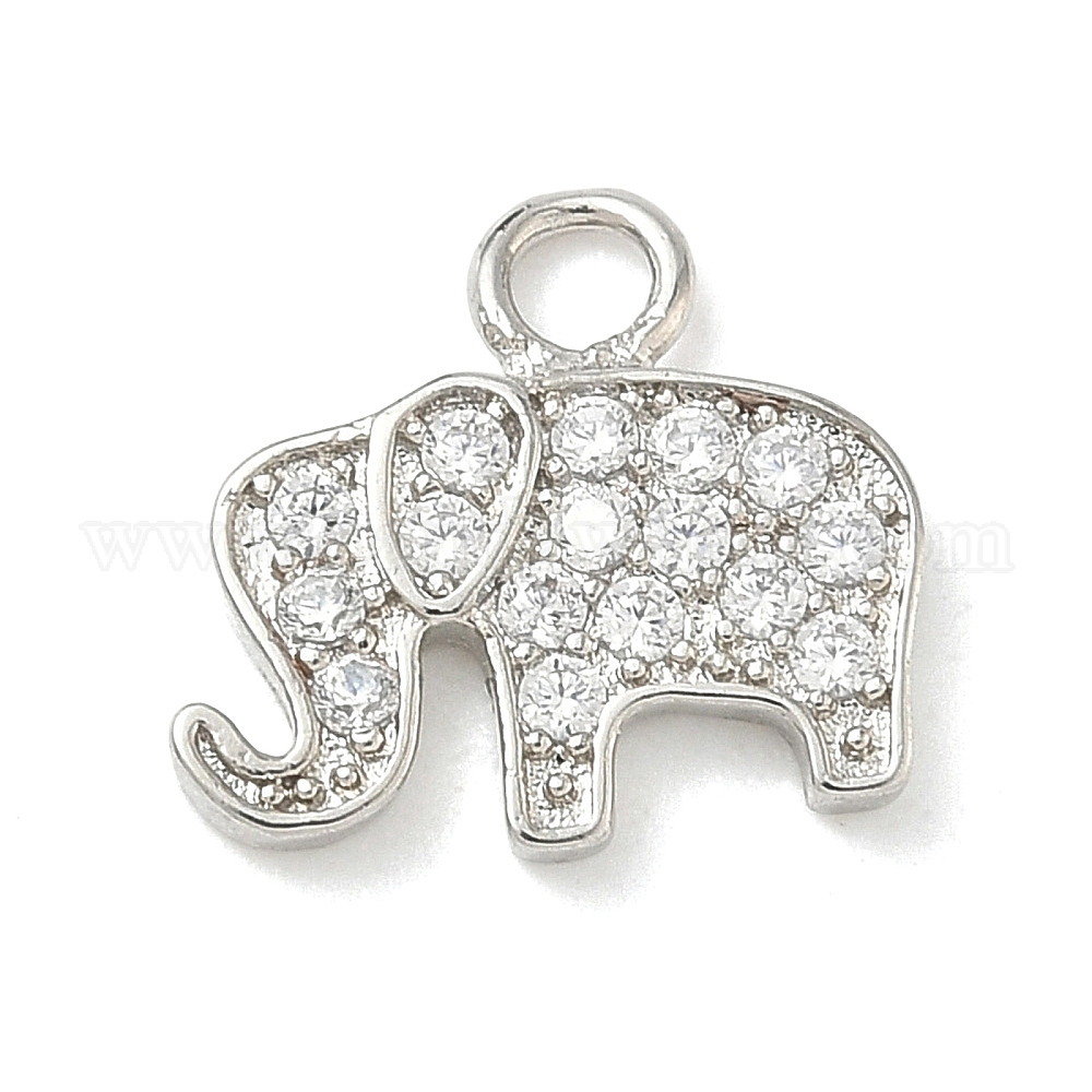 • Платина Латунные микропаве прозрачные кубические циркониевые подвески, очарование слона, платина, 11.5x12x2 мм, отверстие : 2 мм