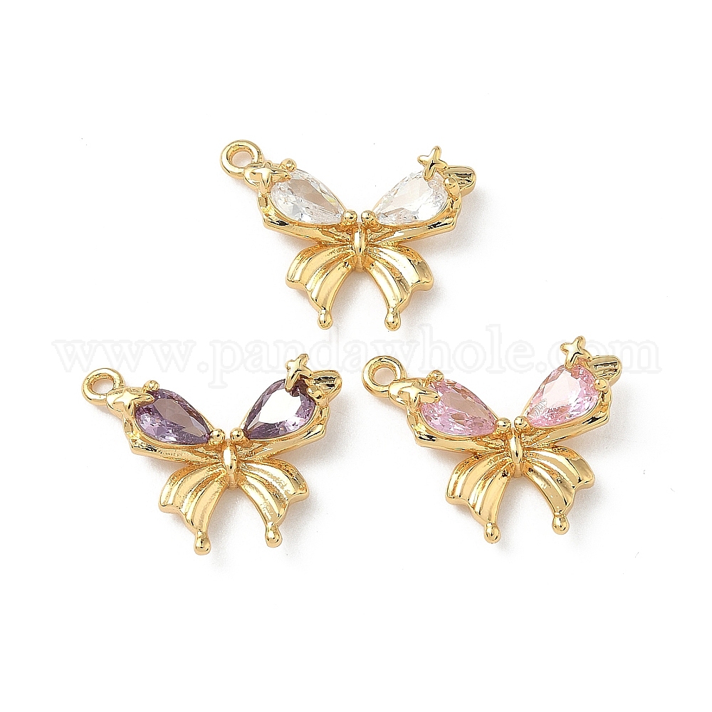 Латунные микро проложить кубического циркония подвески, без никеля , реальный 18 k позолоченный, бантом прелести