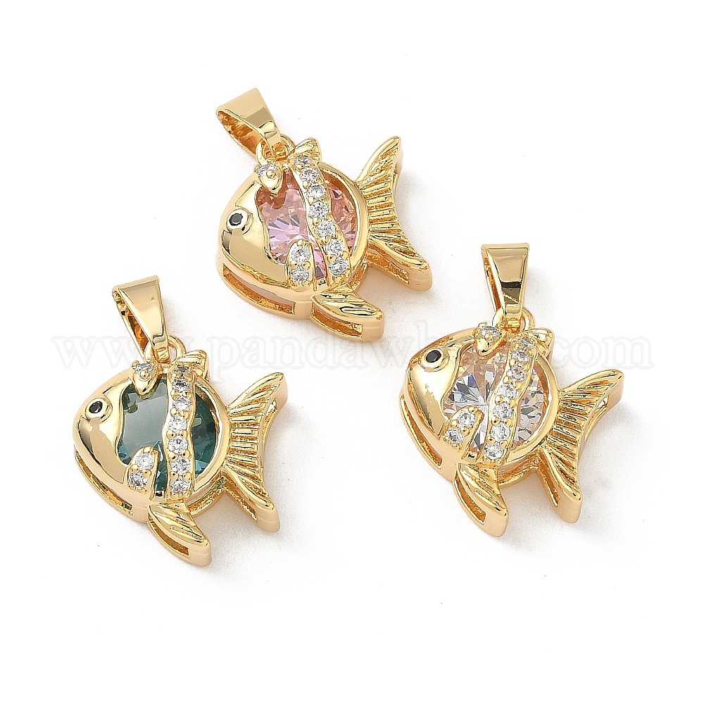 Подвески-рыбки из латуни с микропаве из кубических цирконий, без никеля , реальный 18 k позолоченный