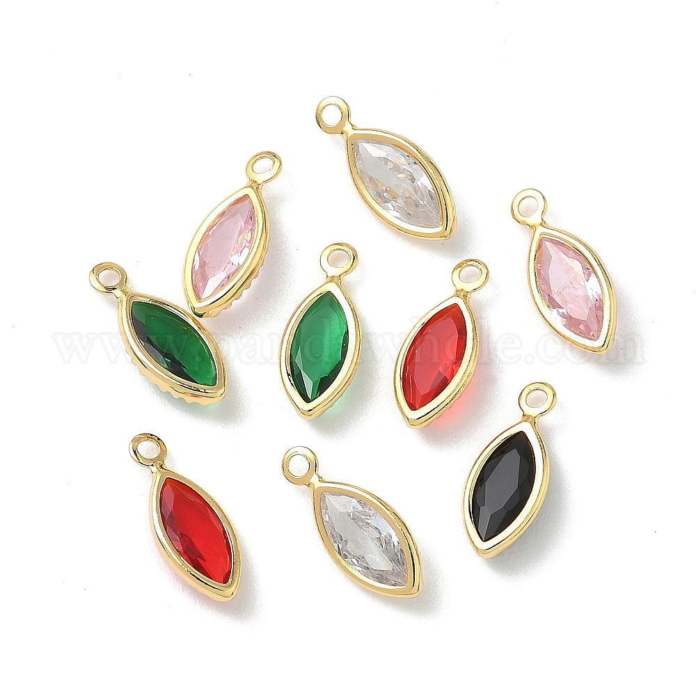Латунный микропаве кубический цирконий со стеклянными подвесками, Очарование лошадиных глаз, без никеля , реальный 18 k позолоченный