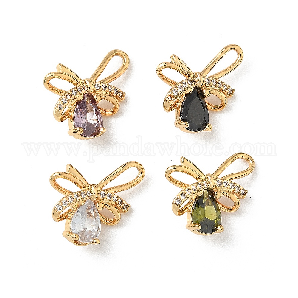 • Прозрачный Латунные микро проложить кубического циркония подвески, бантом прелести, без никеля , реальный 18 k позолоченный, прозрачные, 12.5x15.5x6 мм, отверстие : 1.2 мм
