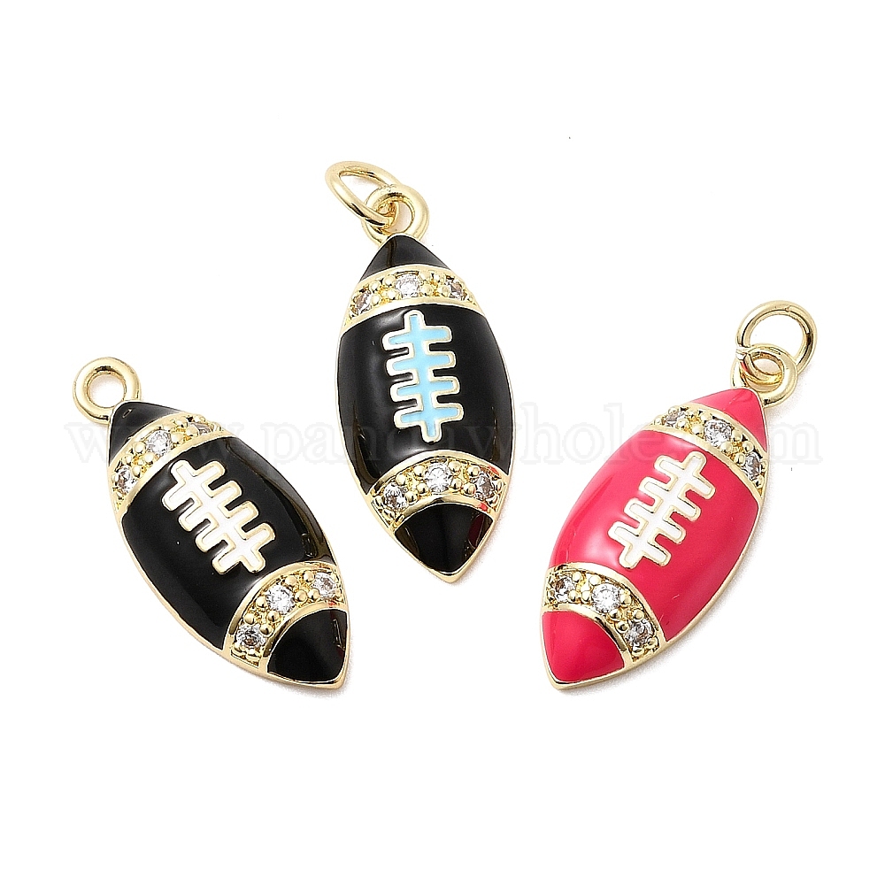 Латунные микро проложить кубического циркония подвески, регби прелести, с эмалью, с целью перехода в кольце