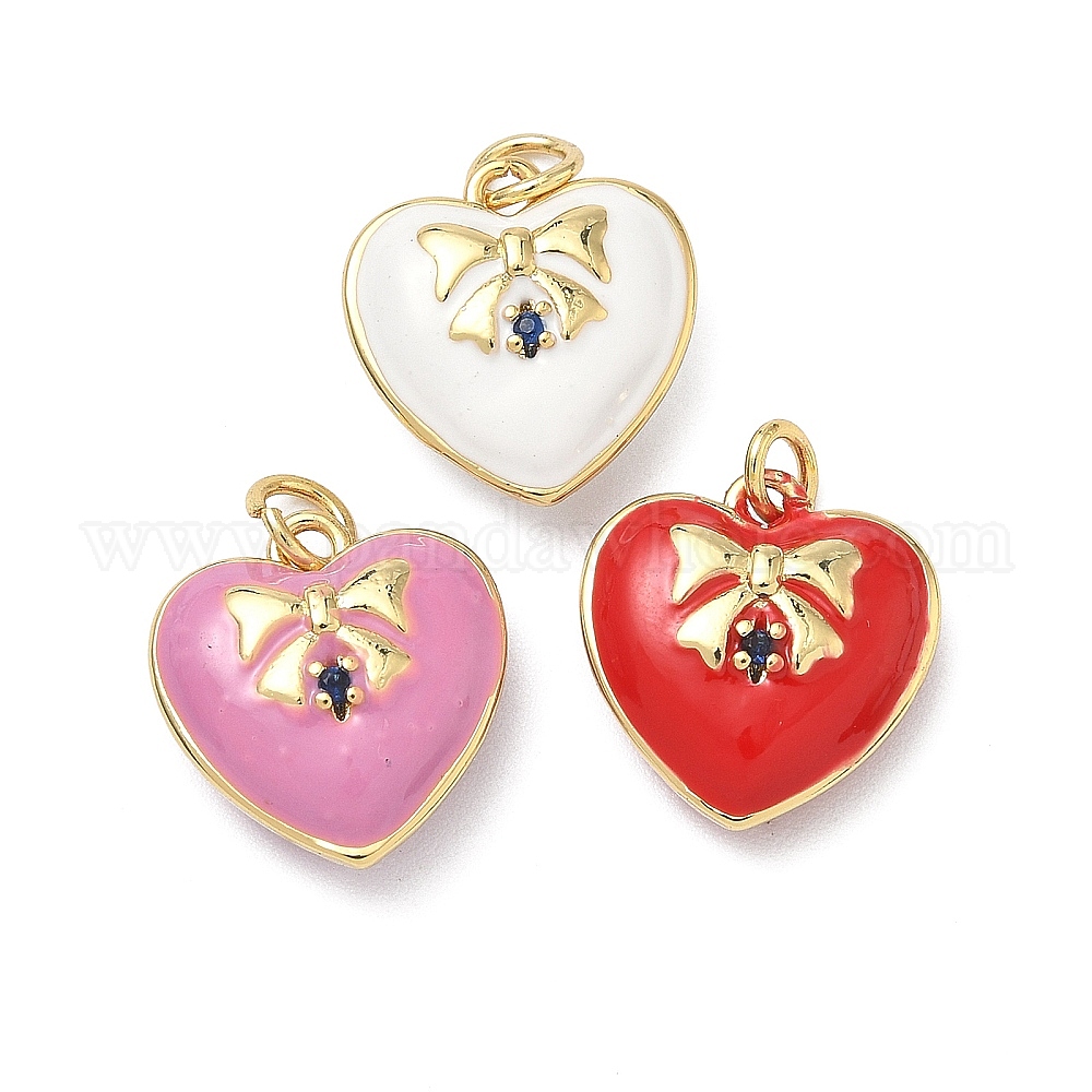 Латунные микро проложить кубического циркония прелести, сердце, с эмалью и кольцом для прыжков, без кадмия и без свинца, стойки покрытие, долговечный, реальный 18 k позолоченный