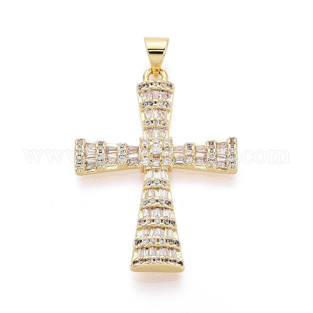 Латунные микропаве прозрачные подвески с фианитом, крест прелести