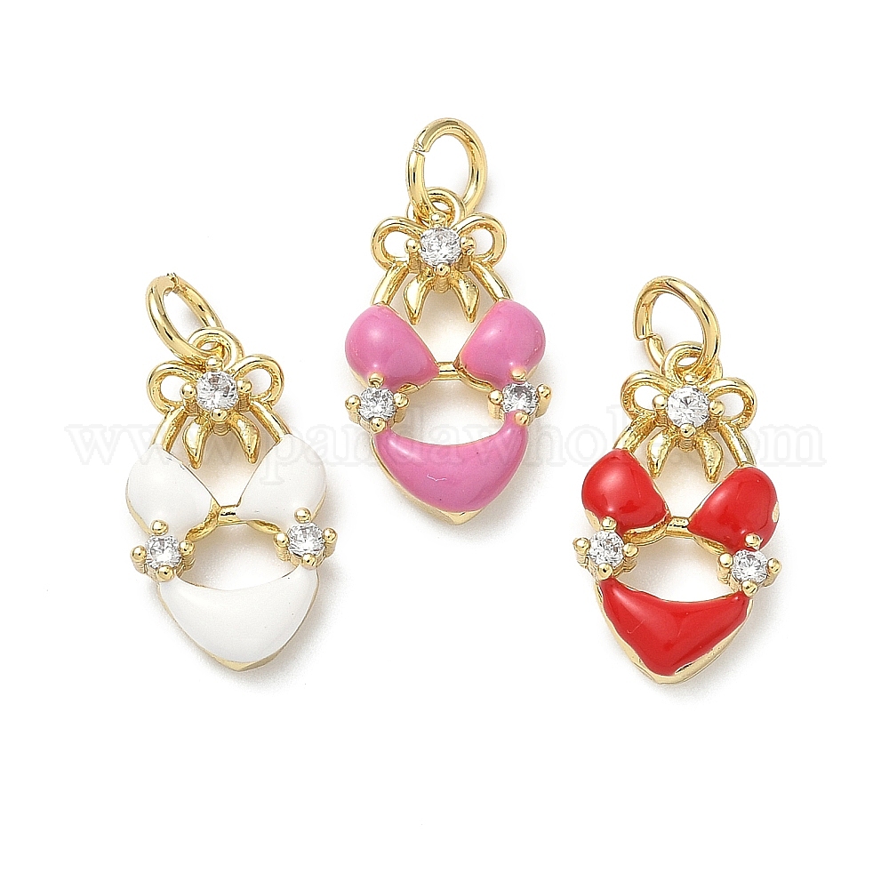 Латунные микро проложить кубического циркония подвески, прелести бикини, с эмалью и кольцом для прыжков, без кадмия и без свинца, стойки покрытие, долговечный, реальный 18 k позолоченный