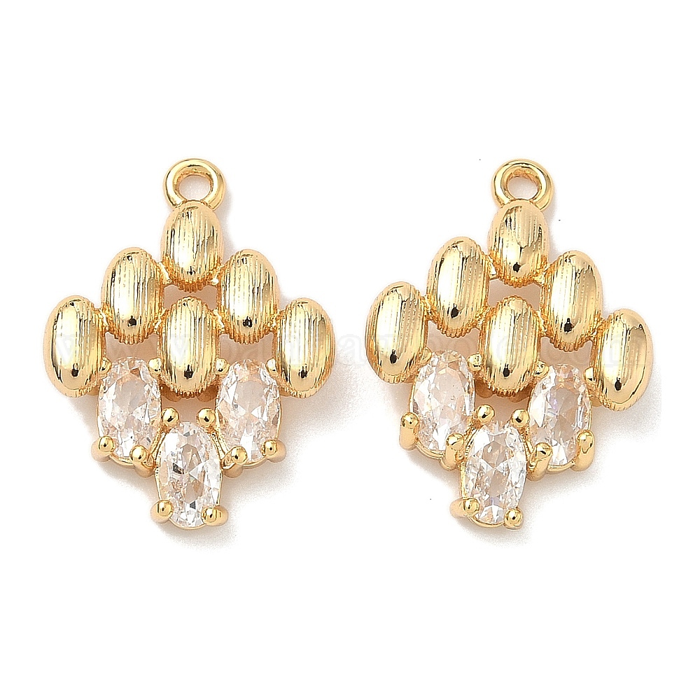 Латунные микро проложить кубического циркония подвески, ромб с овальными подвесками, без никеля , реальный 18 k позолоченный