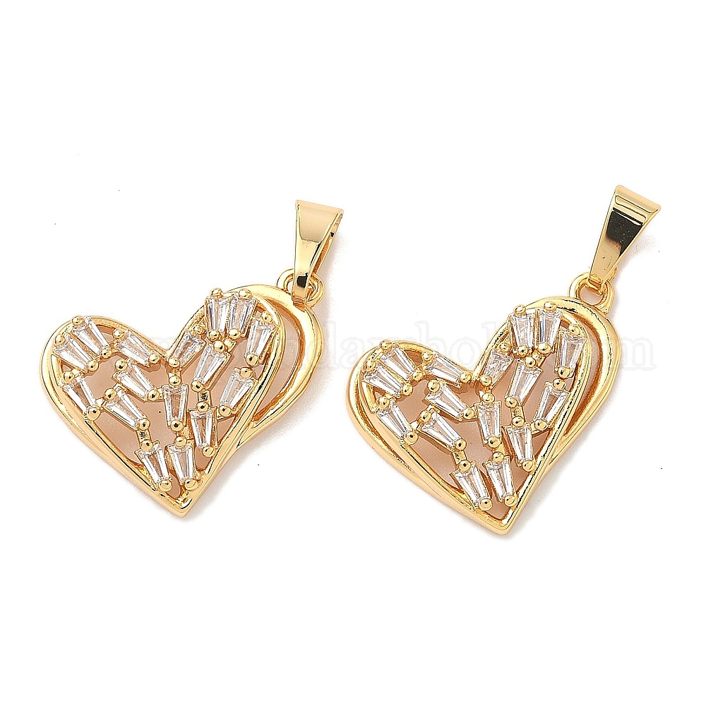 Латунные микро проложить кубического циркония подвески, сердце прелести, без никеля , реальный 18 k позолоченный