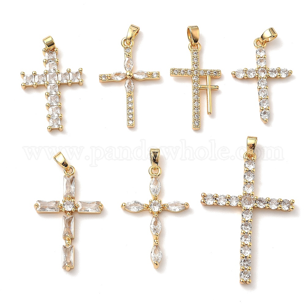 Латунные микро проложить кубического циркония подвески, крест прелести, без никеля , реальный 18 k позолоченный (038X2P)