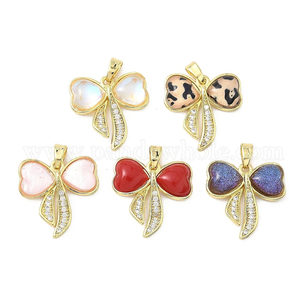 Латунные микро проложить кубического циркония подвески, бантом прелести, cmолой, долговечный, без кадмия и без свинца, стойки покрытие