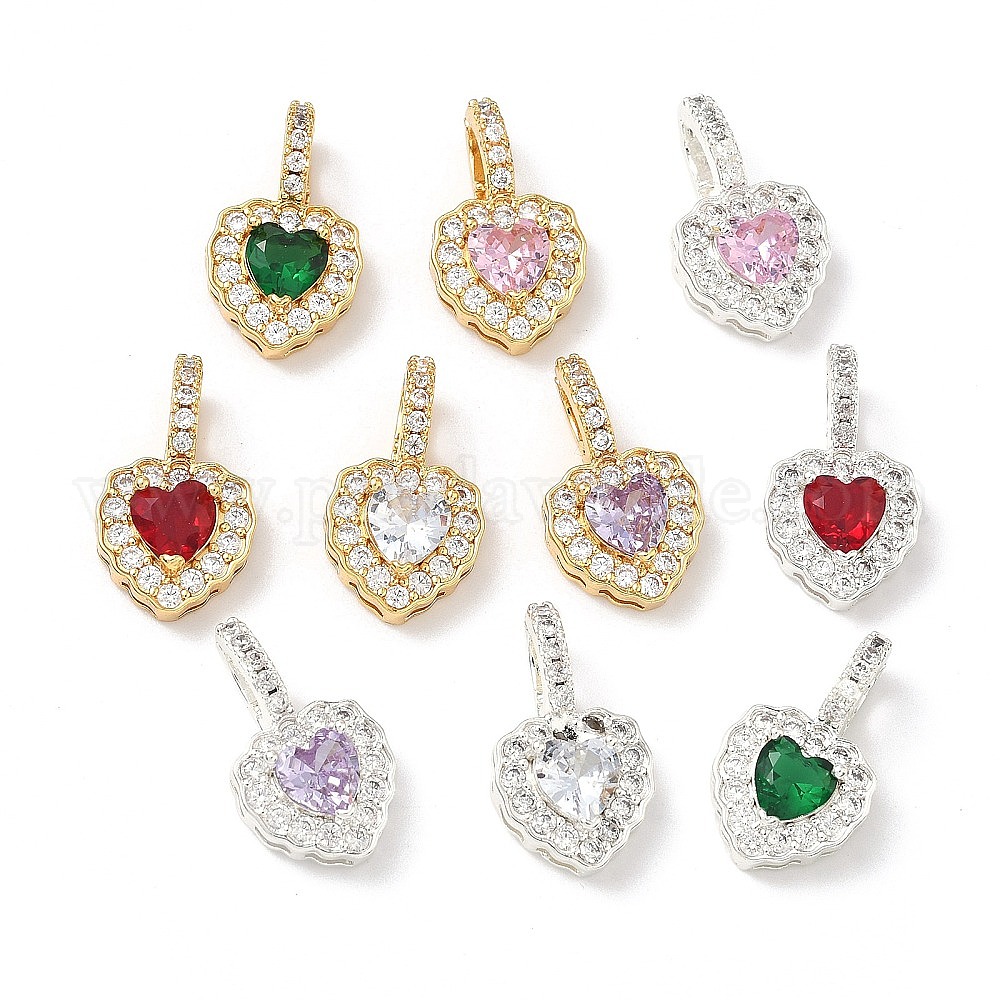 Латунные микро проложить кубического циркония подвески, сердце прелести, настоящее 18k позолота/серебро