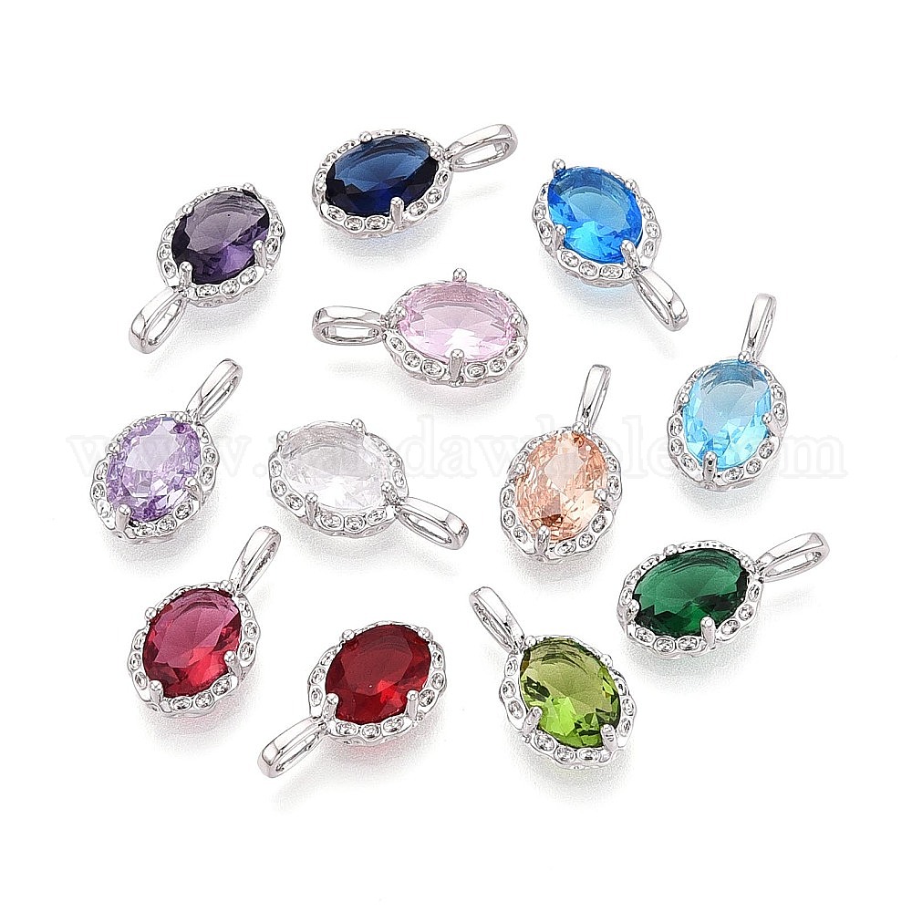 • Платинированный Латунь с кубическим цирконием подвеской, овальные амулеты, Реальная платина, 15x8x4 мм, отверстие : 3.5 мм