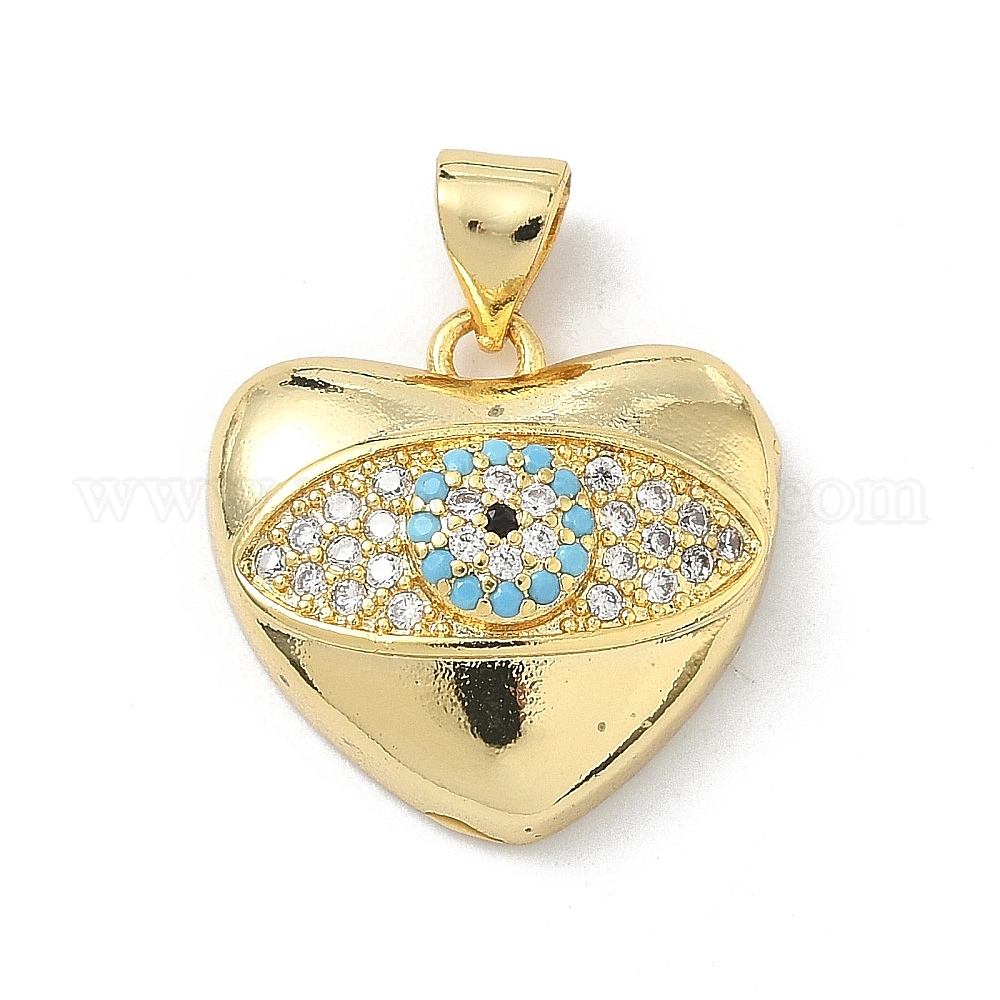 Латунные микро проложить кубического циркония подвески, сердце с оберегами от сглаза, долговечный, стойки покрытие, без свинца и без кадмия