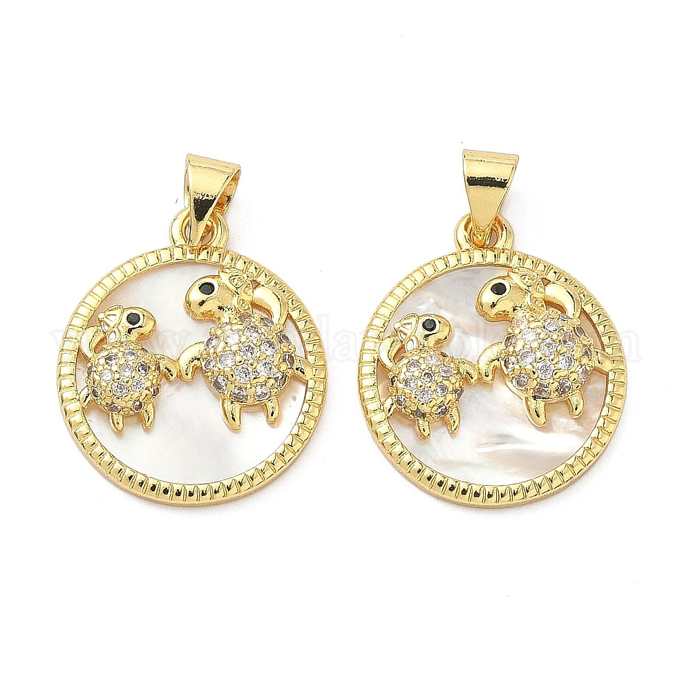 Латунные микро проложить кубического циркония подвески, плоский круглый с подвесками в виде черепахи, с оболочкой