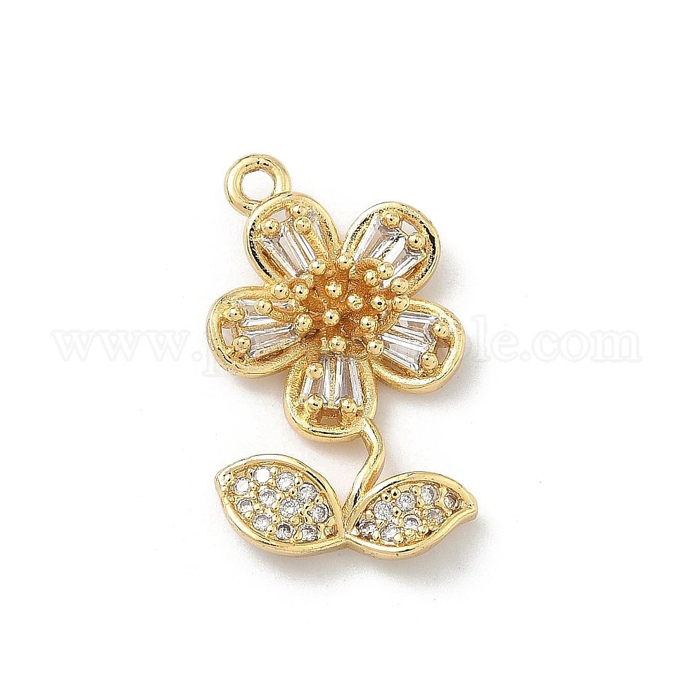 Латунные микропаве прозрачные подвески с фианитом, цветочный шарм, долговечный, стойки покрытие, без свинца и без кадмия