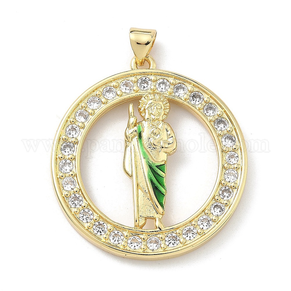 Латунные микро проложить кубического циркония подвески, прелести Святого Иуды, с эмалью, долговечный, стойки покрытие, без свинца и без кадмия
