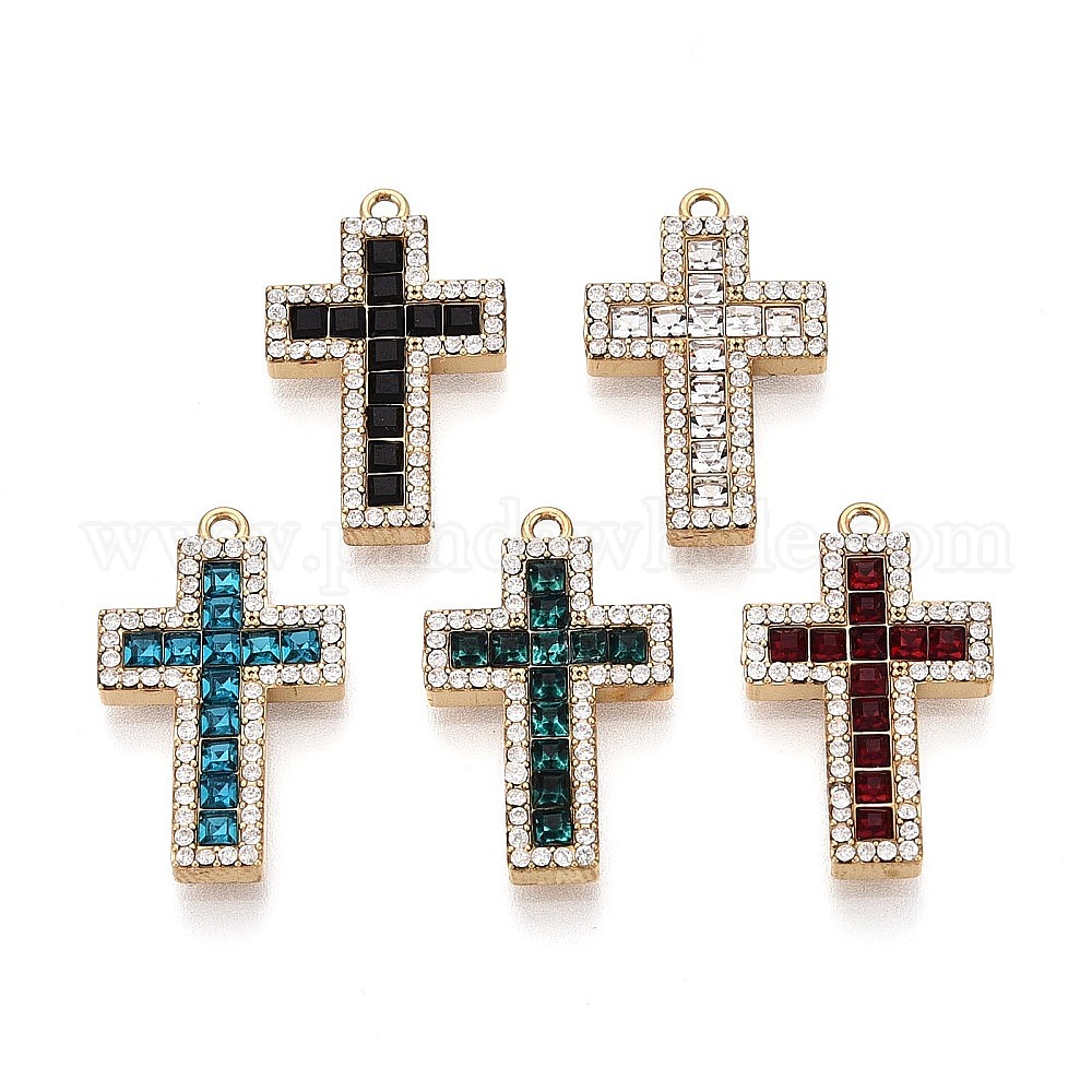 304 подвески из прозрачного кубического циркония из нержавеющей стали, крест прелести, со стеклом, ионное покрытие (ip), реальный 18 k позолоченный