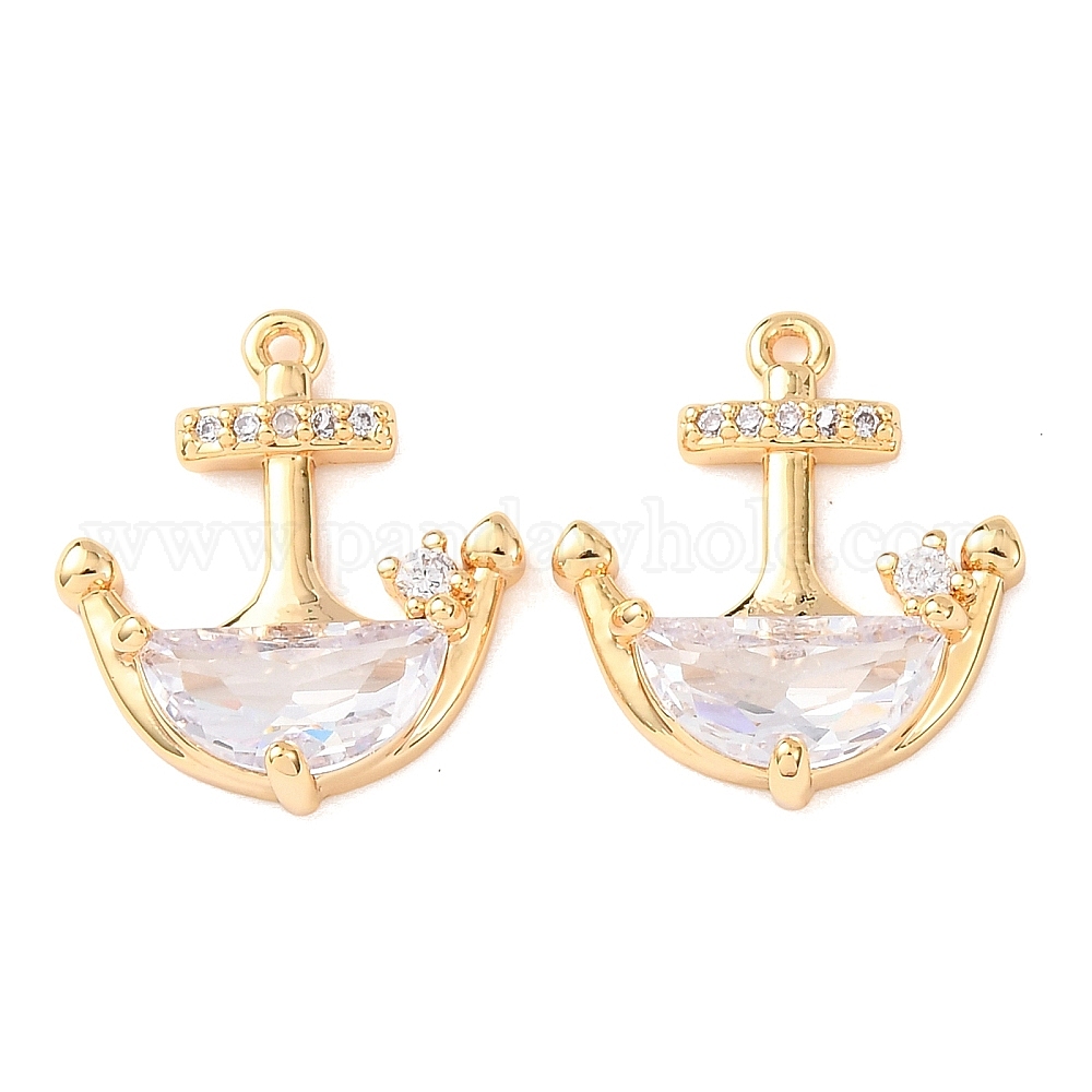 Латунные микро проложить кубического циркония подвески, Якорь прелести, без никеля , реальный 18 k позолоченный