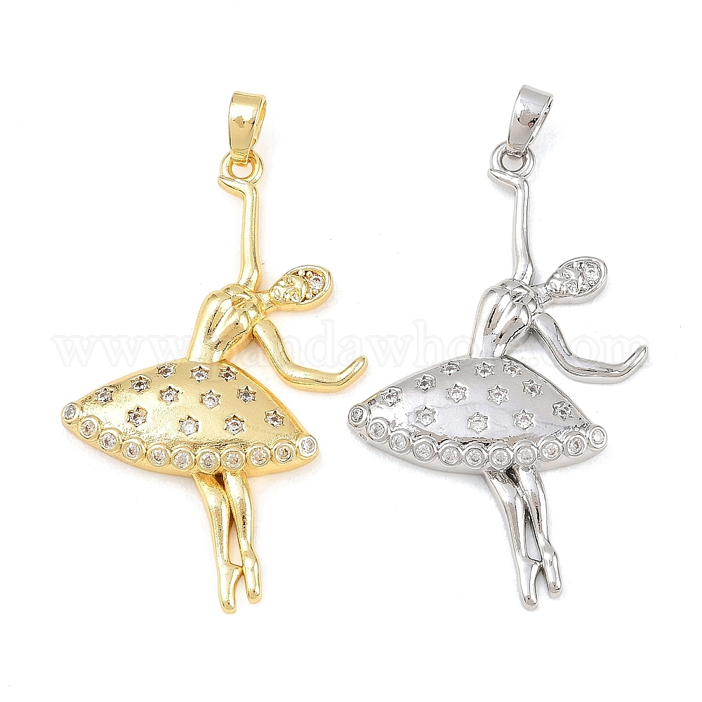 Латунные микропаве прозрачные подвески с фианитом, Балерина прелести