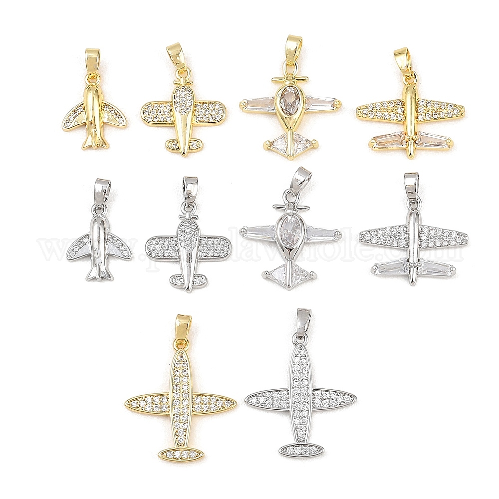 Латунные микропаве прозрачные подвески с фианитом, прелести самолета