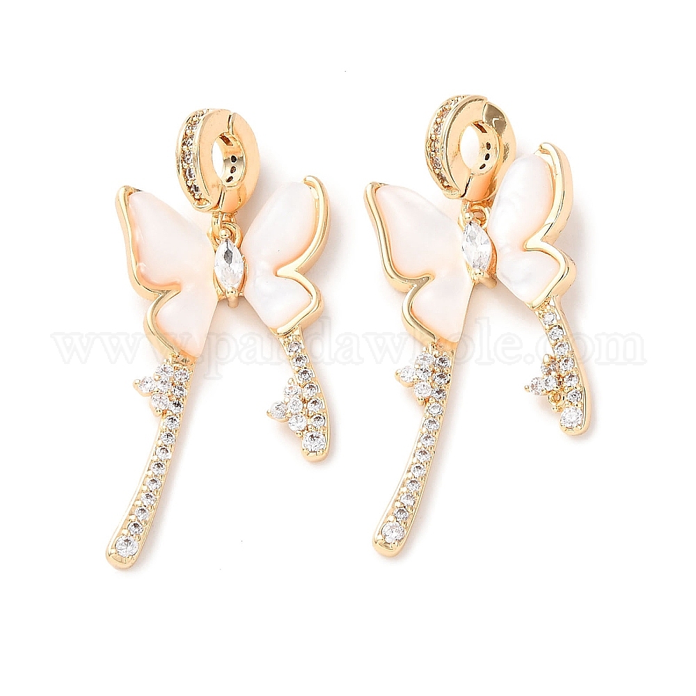 Латунные микропаве прозрачные подвески с фианитом, бабочки прелести