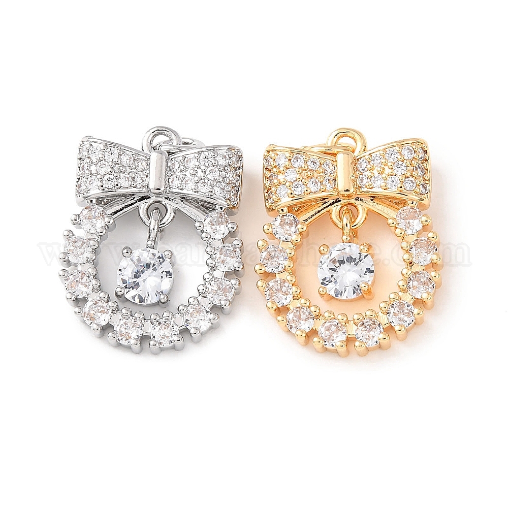 Латунные микропаве прозрачные подвески с фианитом, бантом прелести, с целью перехода в кольце