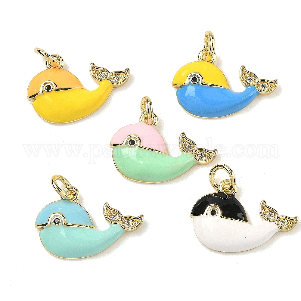 Латунные микропаве прозрачные подвески с фианитом, прелести кита, с эмалью, без свинца и без кадмия, стойки покрытие, долговечный, реальный 18 k позолоченный, с целью перехода в кольце