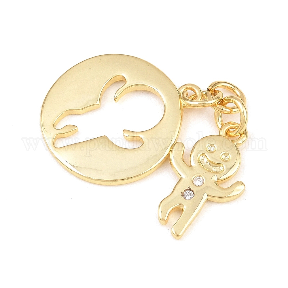 Латунные микро проложить кубического циркония подвески, плоские круглые и пряничные человечки, долговечный, стойки покрытие, без свинца и без кадмия