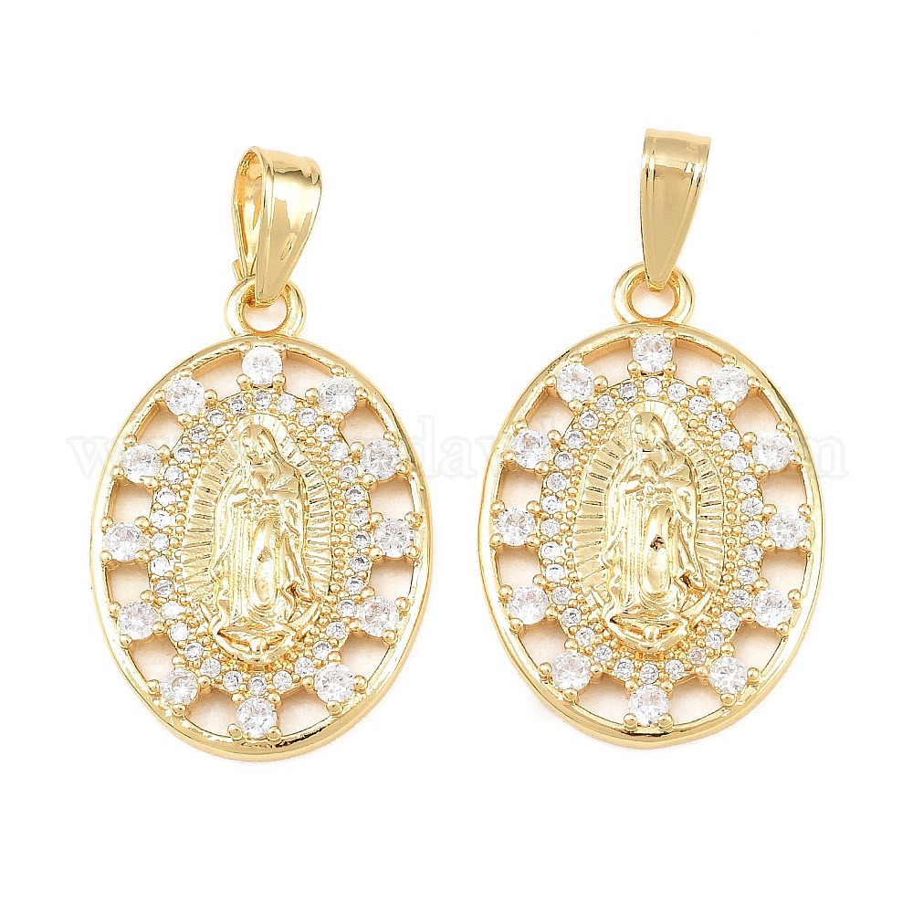 Латунные микро проложить кубического циркония подвески, овал с подвесками Девы Марии, долговечный, стойки покрытие, без свинца и без кадмия