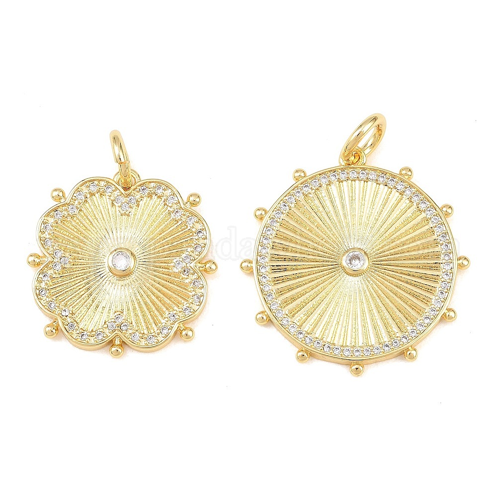 • Цветок Латунные микро проложить кубического циркония подвески, долговечный, стойки покрытие, без свинца и без кадмия, реальный 18 k позолоченный, с целью перехода в кольце, цветок, 25x25x3 мм, Перейти кольцо: 8x1.5 мм, внутренний диаметр: 5 мм