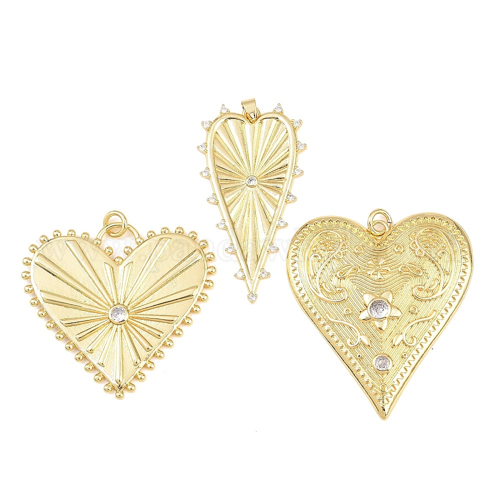 Латунные микро проложить кубического циркония большие кулоны, сердце прелести, долговечный, стойки покрытие, без свинца и без кадмия, реальный 18 k позолоченный (039KSR)
