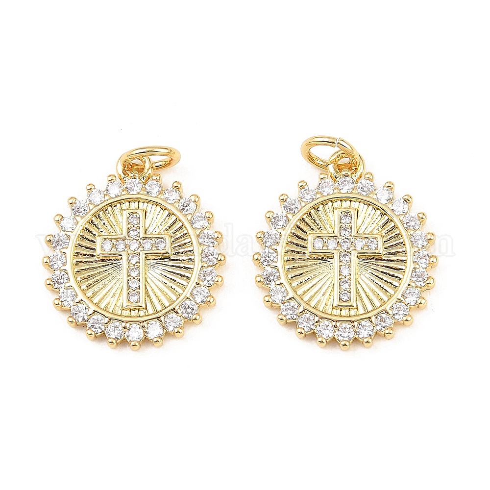 Латунные микро проложить кубического циркония подвески, плоские круглые с поперечными прелести, долговечный, стойки покрытие, без свинца и без кадмия