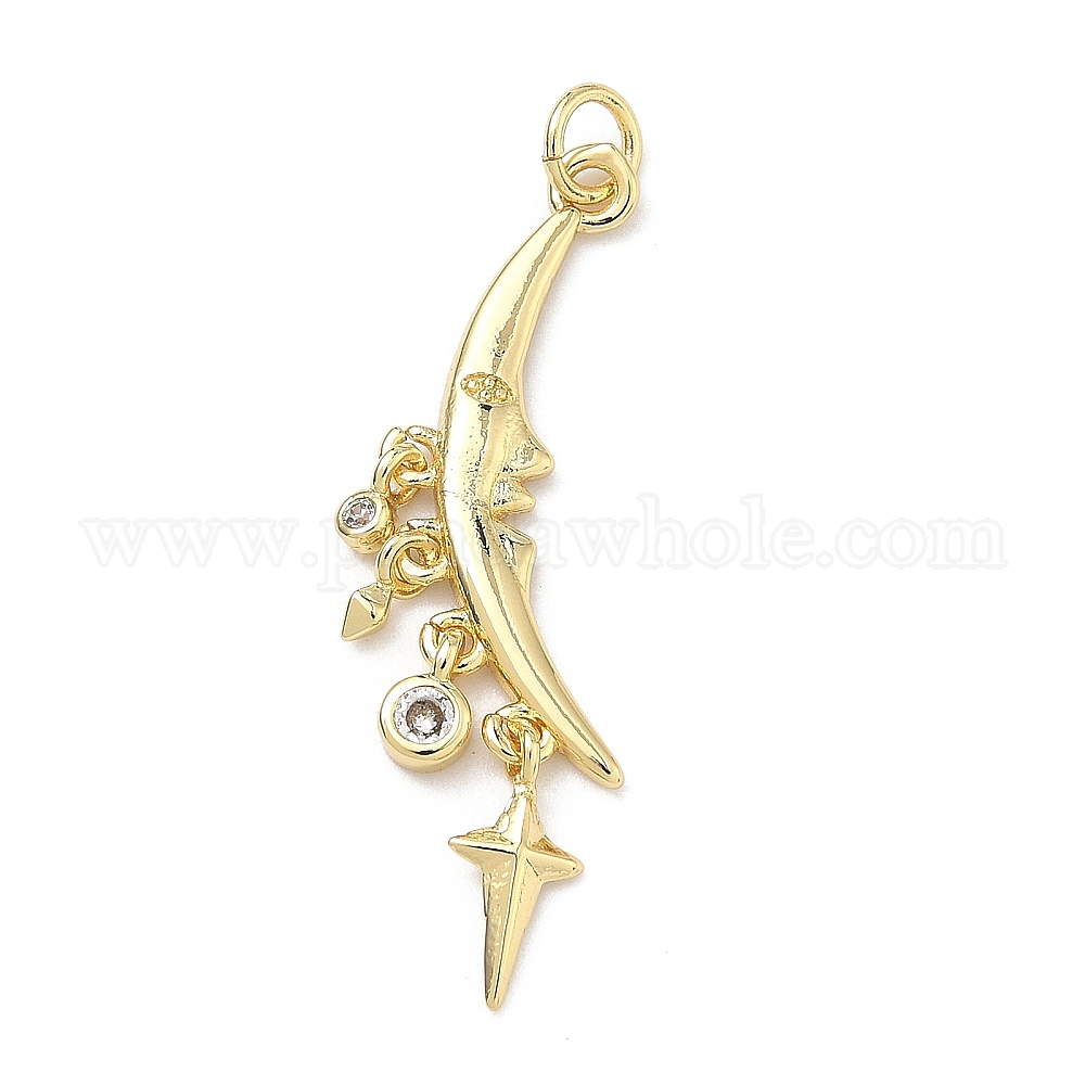 Латунные микро проложить кубического циркония подвески, звезда с лунными чарами, долговечный, без кадмия и без свинца